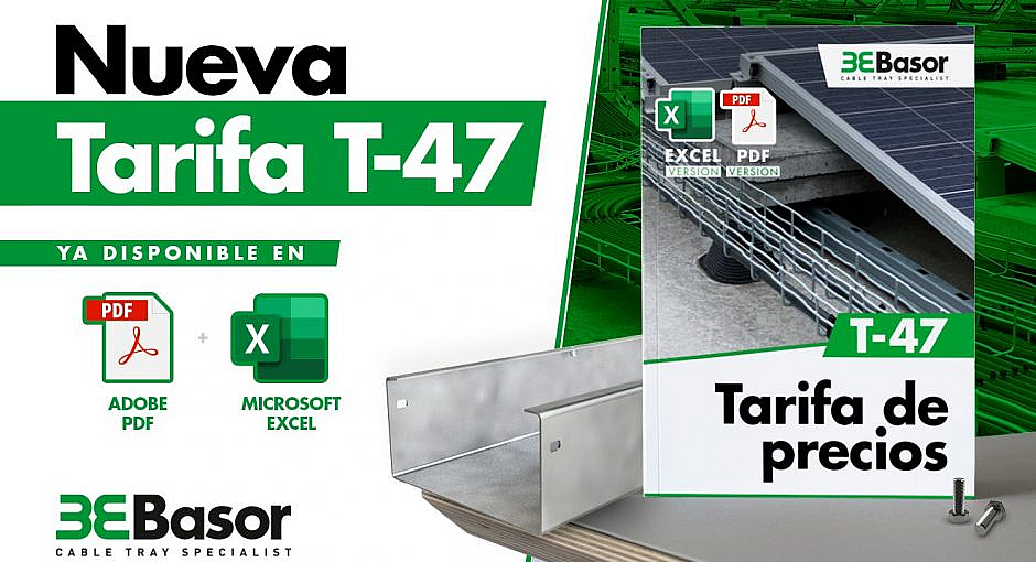 Ya están disponibles las versiones Excel y PDF de nuestra nueva Tarifa T-47. Accede a la sección ‘Descargas’ de nuestro portal corporativo (www.basor.com/descargas) y descubre las más de 200 páginas, 10 familias de producto, un apéndice técnico completo con todos los servicios a medida y una guía por código nomenclativo para encontrar el precio, unidad mínima de embalaje y código Gtin-13 de cada producto de forma rápida.