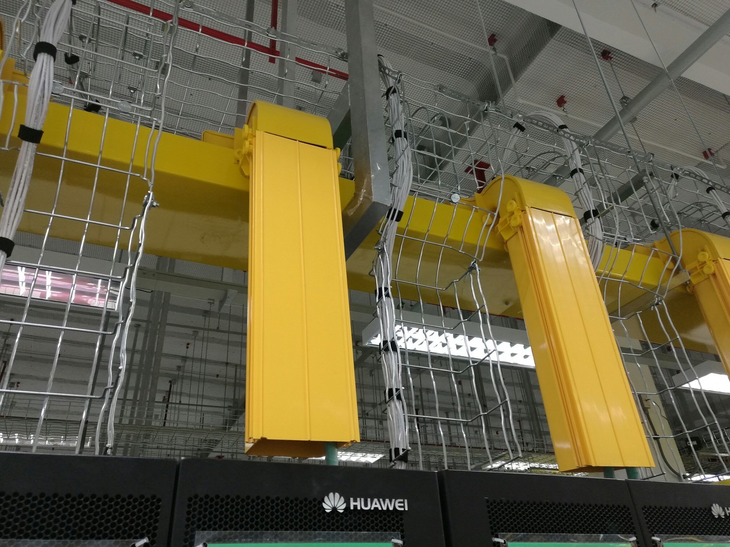 Centro de processamento de dados do fabricante chinês de tecnologia Huawei projetado para a cidade de Bangkok (Tailândia) com calha de varão eletrozincado e varão EZ + tinta para diferenciar as diferentes salas de servidores.